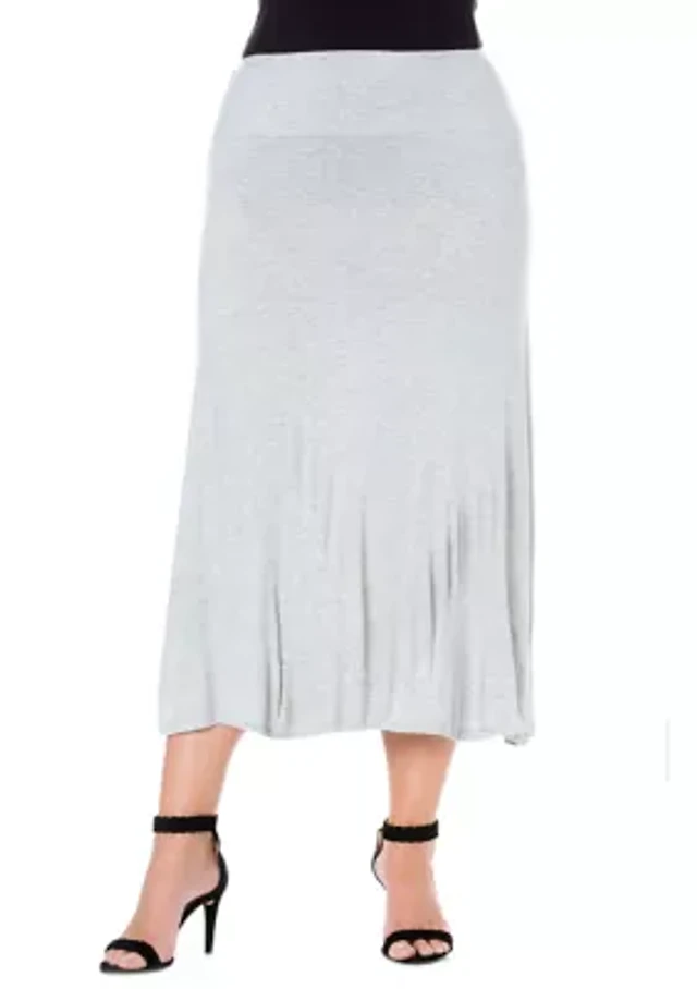 24seven Comfort Apparel Womens Plus Mid Rise Stretch Fabric Maxi Skirt