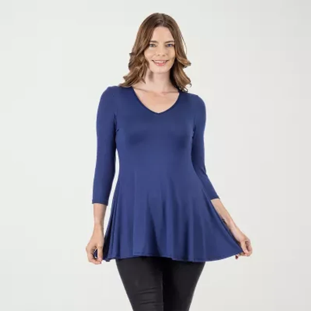 24seven Comfort Apparel Womens V Neck 3/4 Sleeve Tunic Top