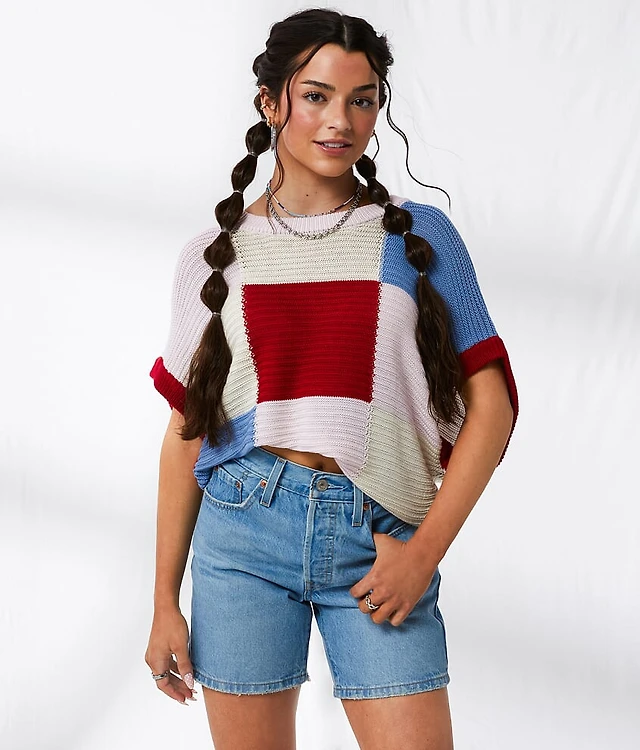 Two Tone Pointelle Cropped Sweater