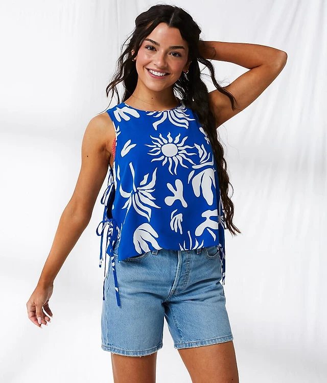 Tropical Side Tie Tank Top