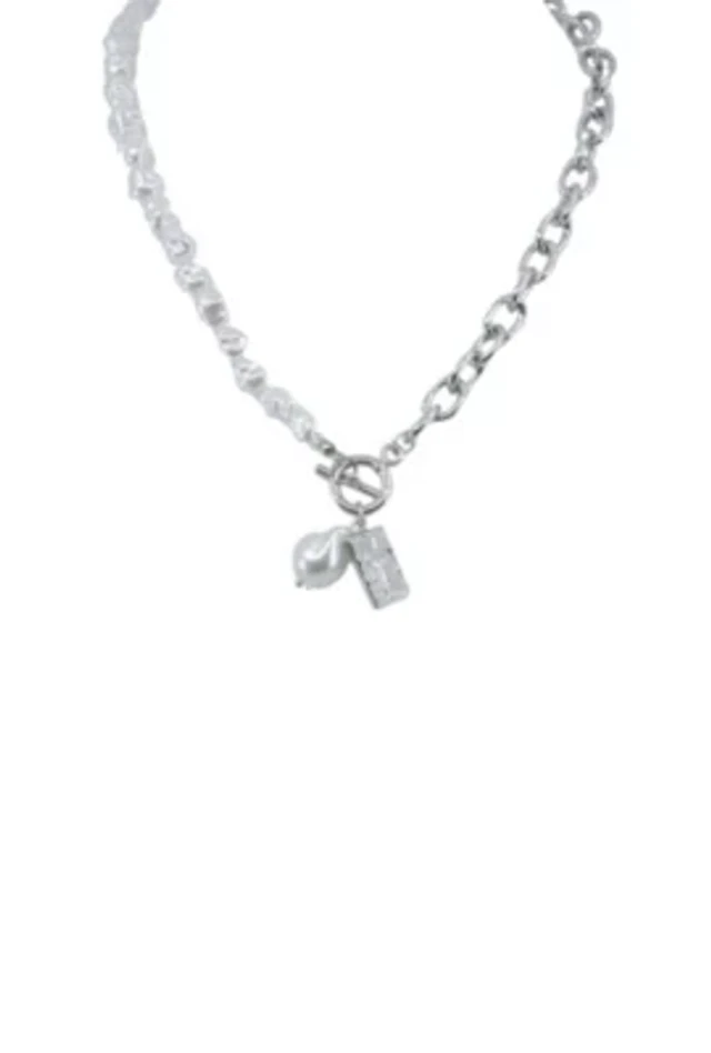 Silver Pearl And Chain Lariat Necklace With Coin Accent