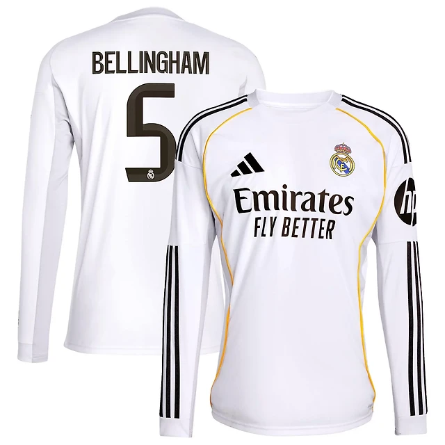 adidas Jude Bellingham Real Madrid 2025 26 Home Authentic Long Sleeve Jersey