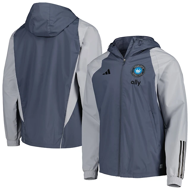 Men's adidas Charcoal Charlotte FC All-Weather Raglan Hoodie Full-Zip Jacket