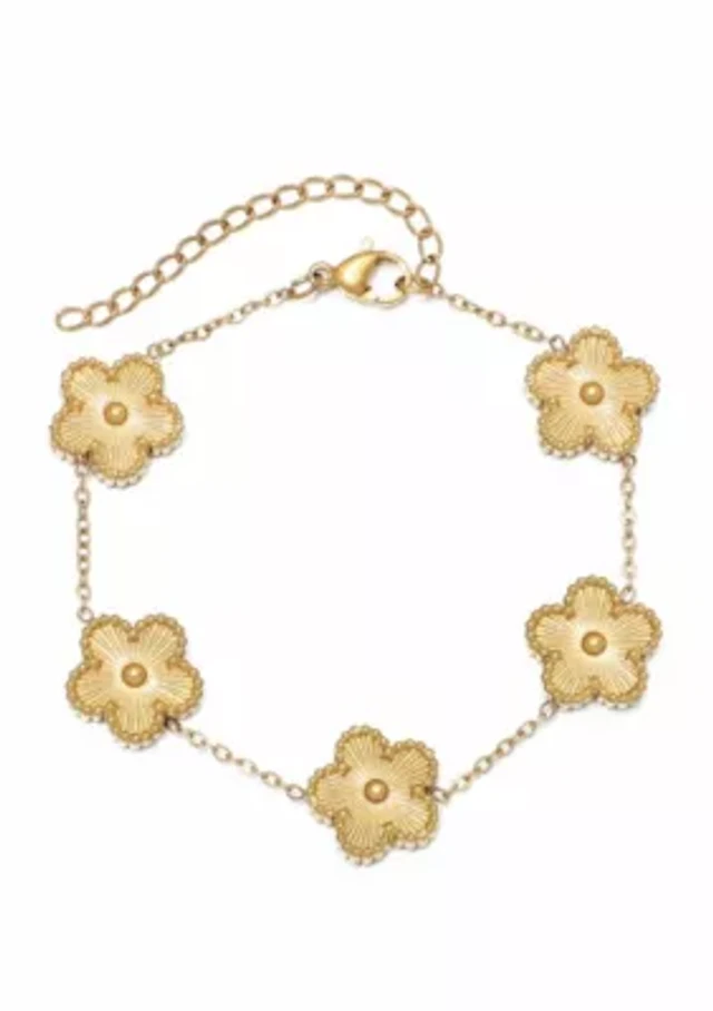 Tarnish Resistant 14k Yellow Gold Plated 5-Leaf Clover Station Bracelet