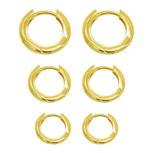 14k Gold Plated 3-Huggie Hoop Earrings Set