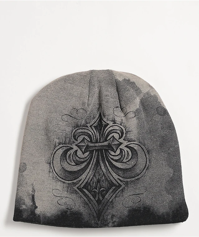 Affliction Fleur-De-Lis Grey Reversible Skully Beanie