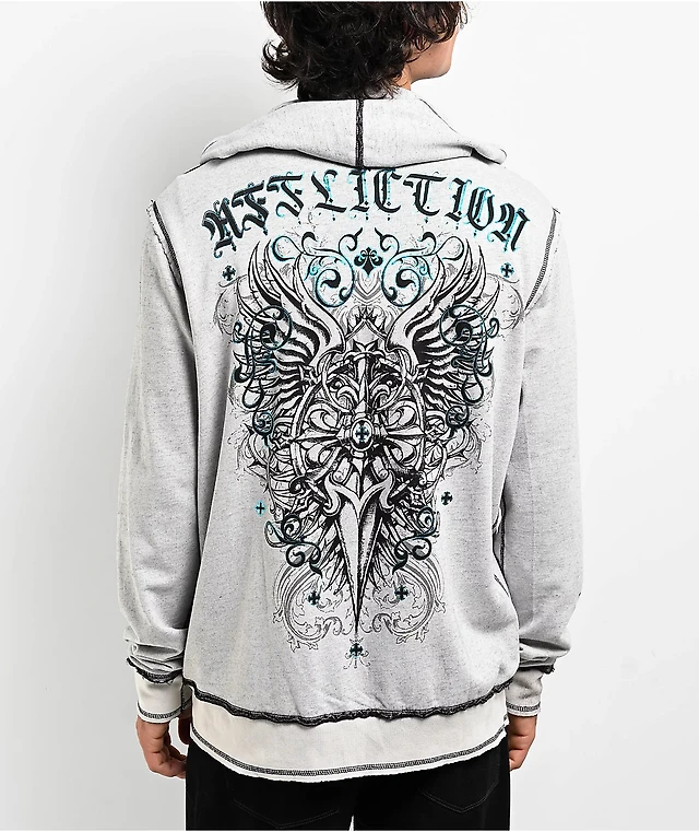 Affliction Dark Attack Silver Lava Wash Thermal Long Sleeve T-Shirt