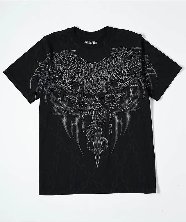 Affliction Horror Swarm Black Long Sleeve Crop T-Shirt