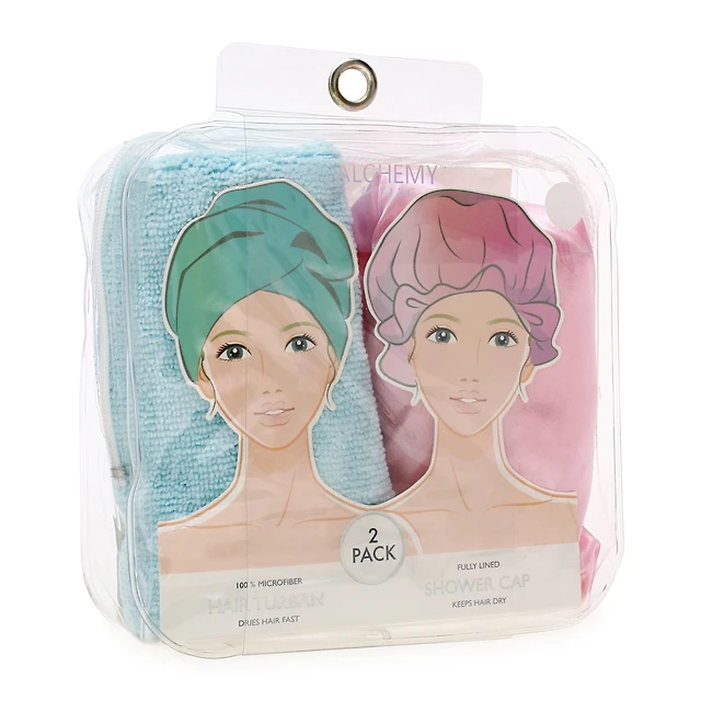 Shower Cap & Microfiber Hair Turban 2-Pack