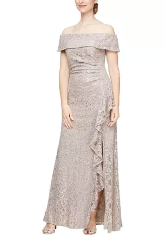 Women's Crinkle Stretch Taffeta Off the Shoulder Dress