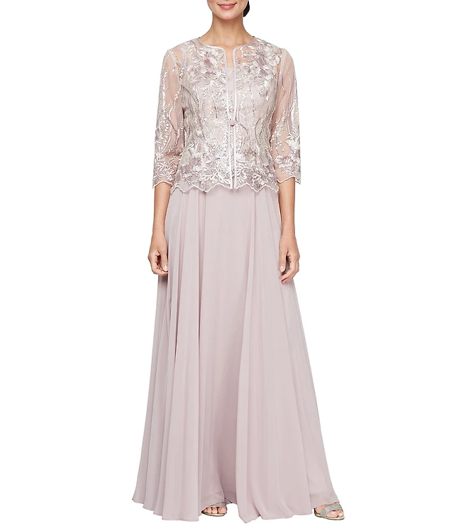 Alex Evenings Sequin Embroidered Tulle Long Jacket Dress