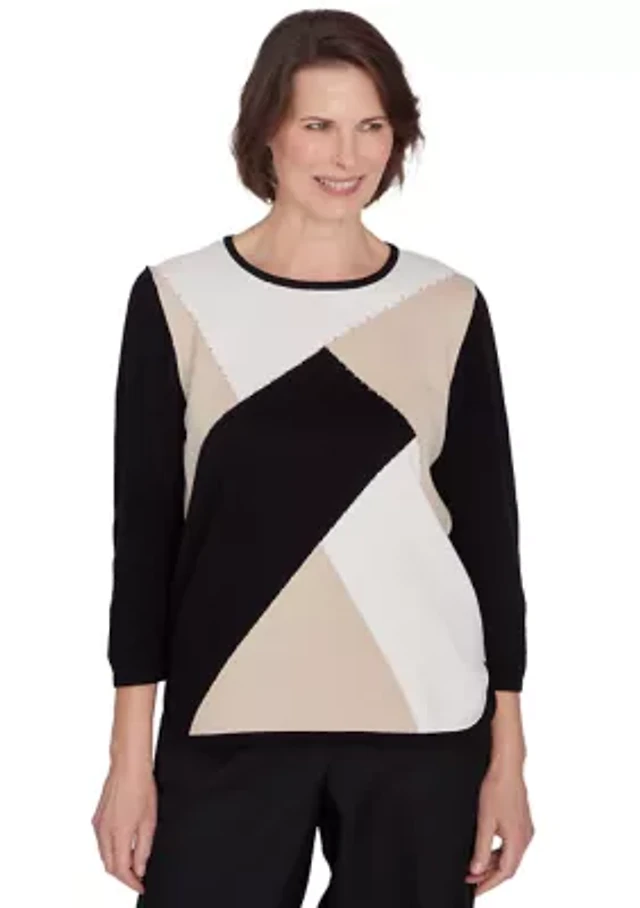 Petite 3/4 Sleeve Falling Flowers Knit Top