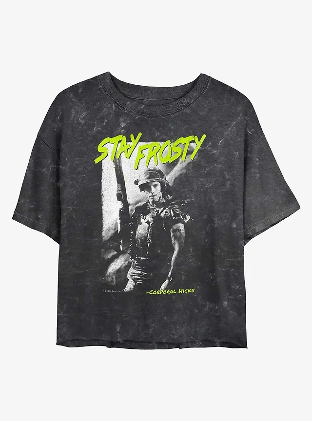 Alien Stay Frosty Womens Mineral Wash Crop T-Shirt