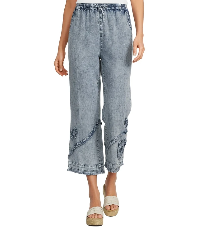 Ali Miles Coordinating Embroidered Frayed Hem Straight Leg Pull-On Pants