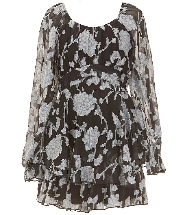 Allison & Kelly Big Girls Burnout Velvet Floral Corset Look Long Sleeve Dress