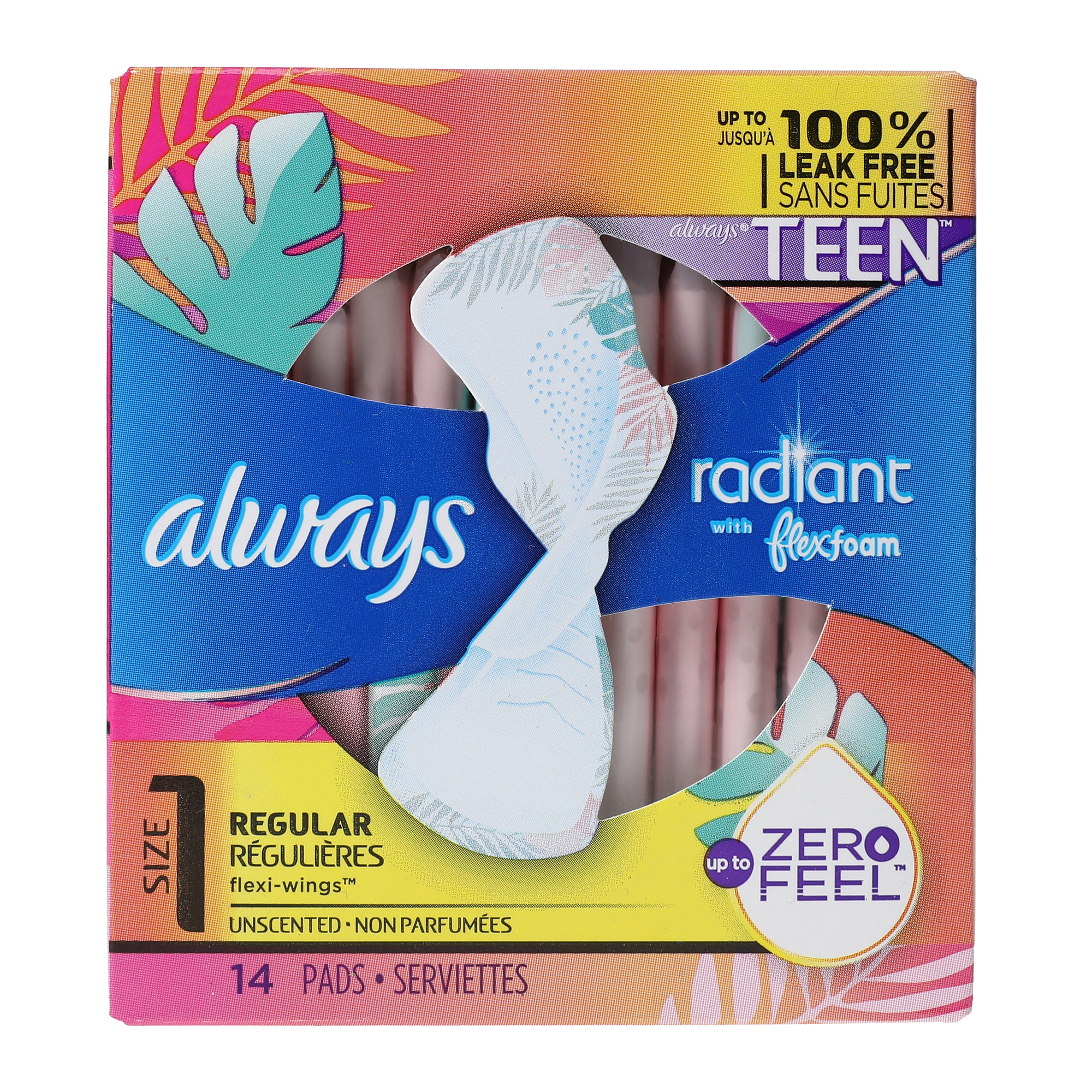Always® Teen™ Radiant With Flex Foam™ Size 1 Regular Pads 14-Count