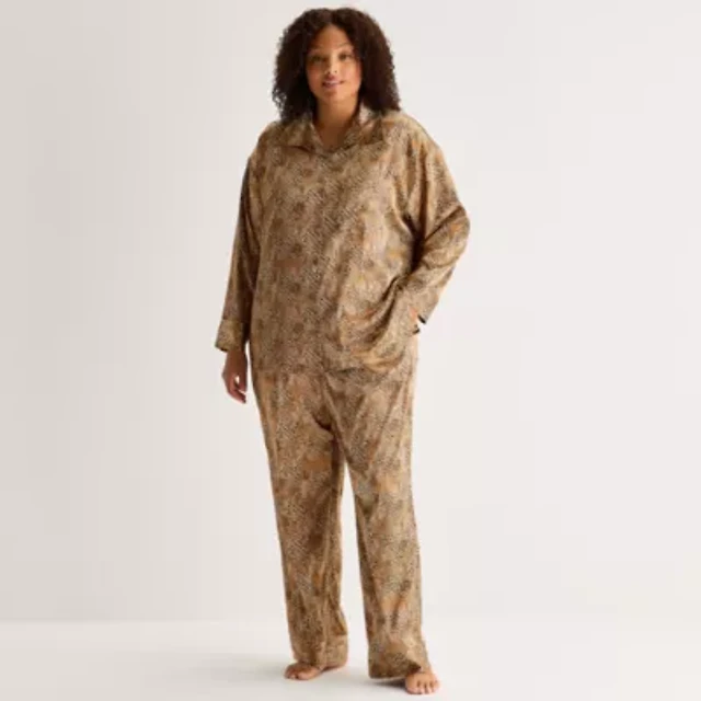 Ambrielle Womens Satin Long Sleeve 2-pc. Plus Pajama Sets