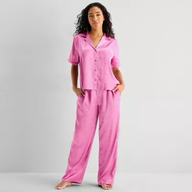 Ambrielle Womens Satin Short Sleeve 2-pc. Pajama Sets