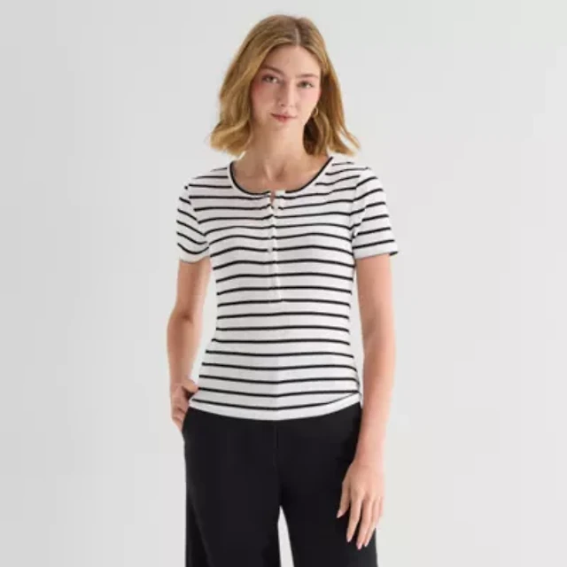 a.n.a Womens Plus Short Sleeve Slim Fit Henley Shirt