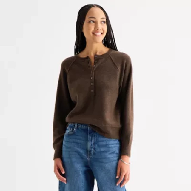 a.n.a Womens Henley Neck Long Sleeve Sweatshirt