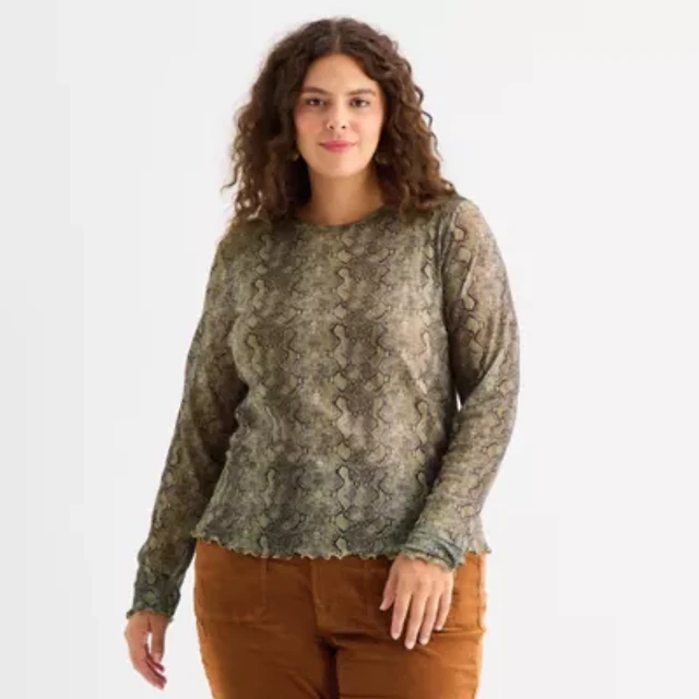 a.n.a Womens Plus Crew Neck Long Sleeve Sweatshirt