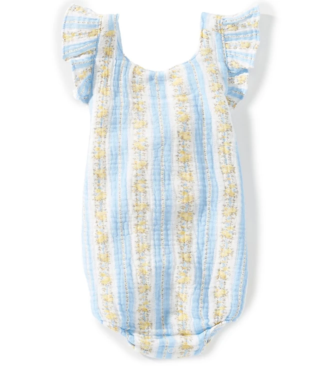 Angel Dear Baby Girls Organic Cotton Odalys Floral Stripe Sunsuit Romper