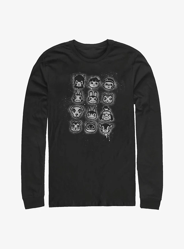 Animal Crossing Tilted Villager Stencil Long-Sleeve T-Shirt