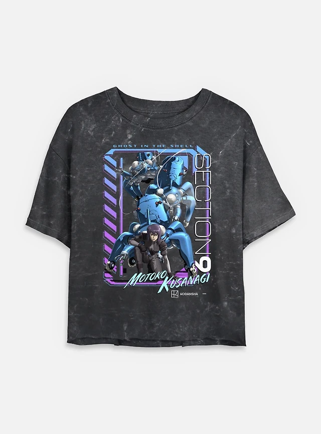 Ghost the Shell Digi Framed Mineral Wash Womens Crop T-Shirt