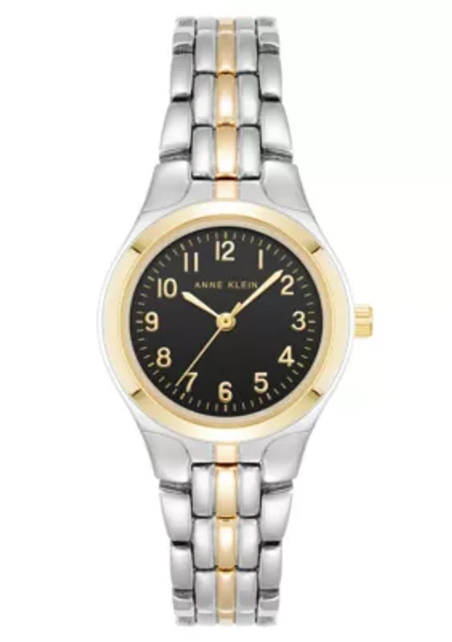Anne Klein Women's Classic Two-Tone Metal Alloy Easy To Read Black Dial Watch, 26mm