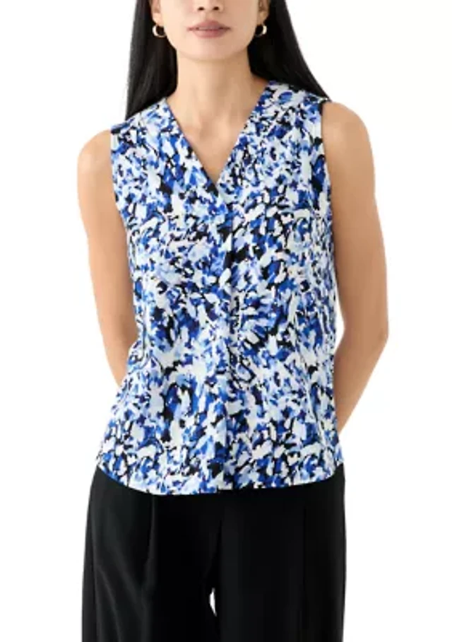Petite Abstract Print V-Neck Pleat Front Blouse