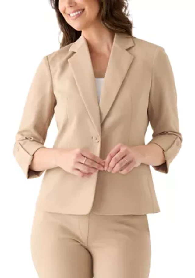 Petite Long Sleeve Notch Collar Plaid Blazer