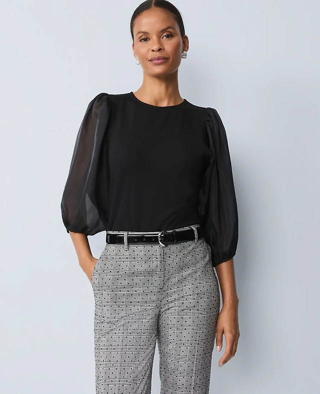 Ann Taylor Plaid Mock Neck Top Black Women's