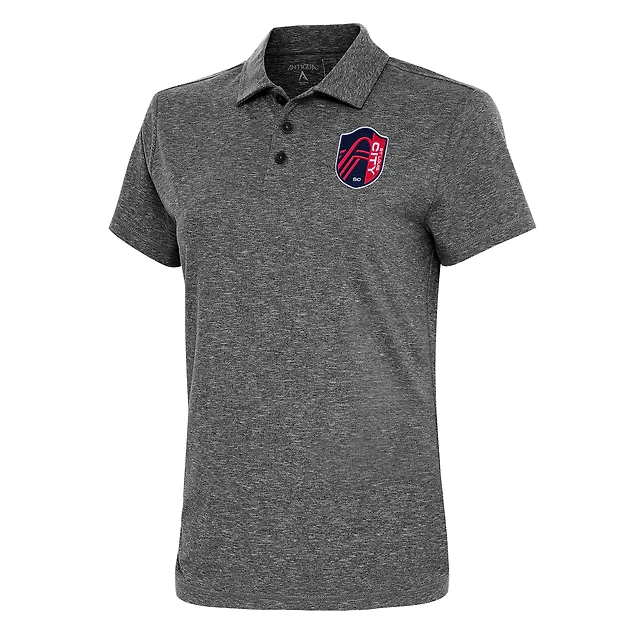 Women's Antigua Heather Black St. Louis City SC Motivated Polo