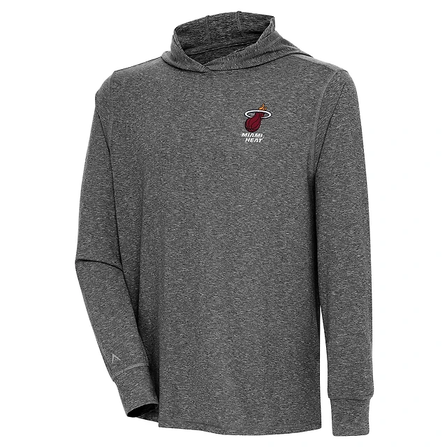 Men's Antigua Heather Black Miami Heat Saga Long Sleeve Hoodie T-Shirt