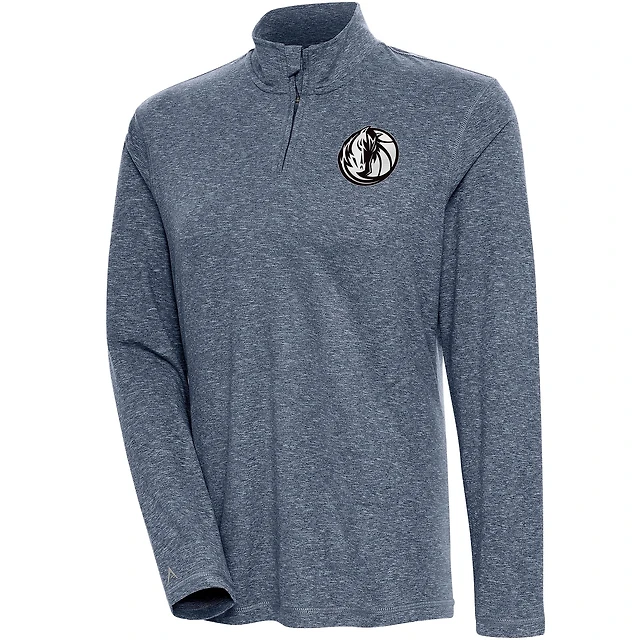 Women's Antigua Heather Navy Dallas Mavericks Brushed Metallic Comfort Quarter-Zip Pullover Top