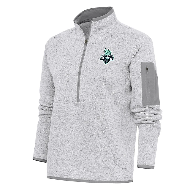 Women's Antigua Heather Gray New York Liberty Fortune Half-Zip Jacket