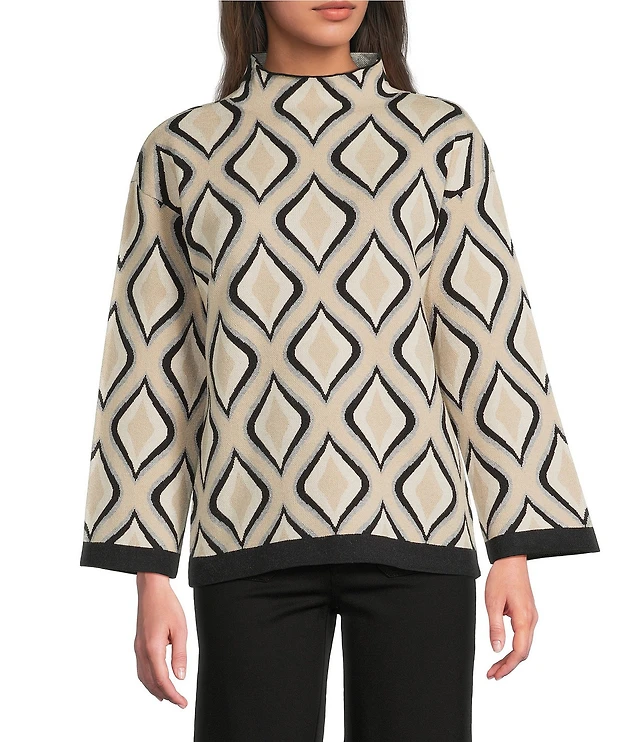 APNY Wool Blend Knit Jacquard Mock Neck Long Sleeve Sweater