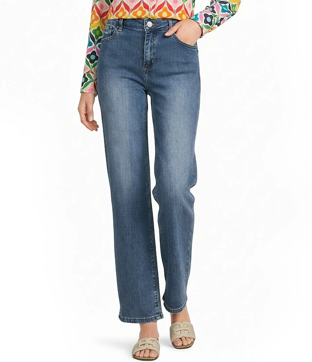 APNY Stretch Denim Mid Rise Cropped Wide Leg Jeans