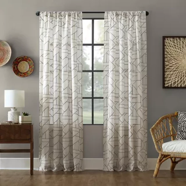 Archaeo Jigsaw Embroidery Linen Blend Rod Pocket Sheer Single Curtain Panel