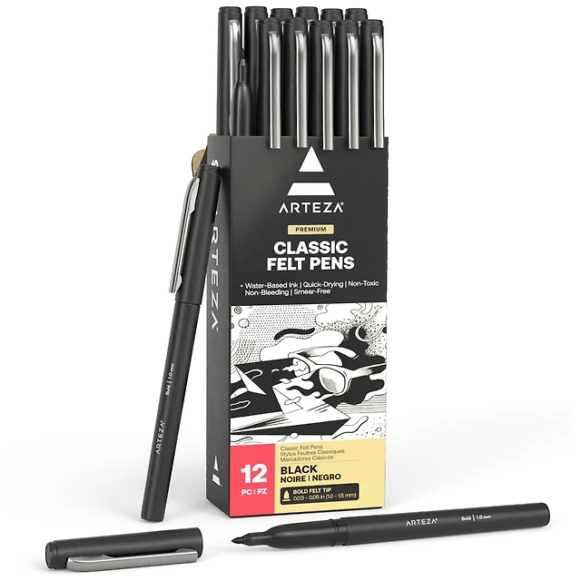 Arteza® Black Bold Tip Classic Felt Pens, 12ct.