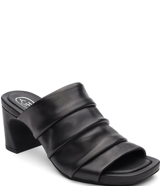 ASH Eva Ruched Leather Sculptural Heel Slide Sandals