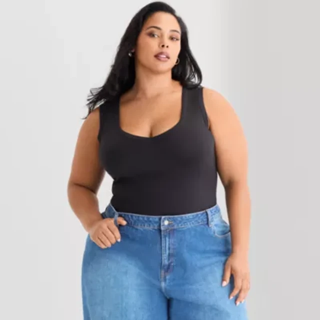 Ashley Graham Womens Plus U Neck Sleeveless Tank Top