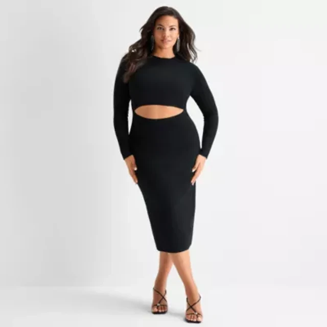 Ashley Graham Womens Plus RibCutout Dress