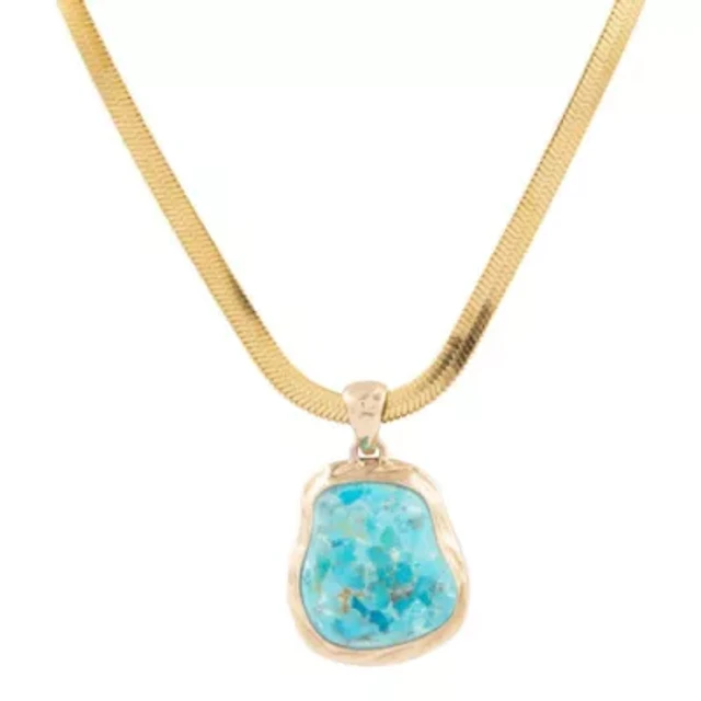 Abby Blue Turquoise and Golden Bronze Pendant Necklace