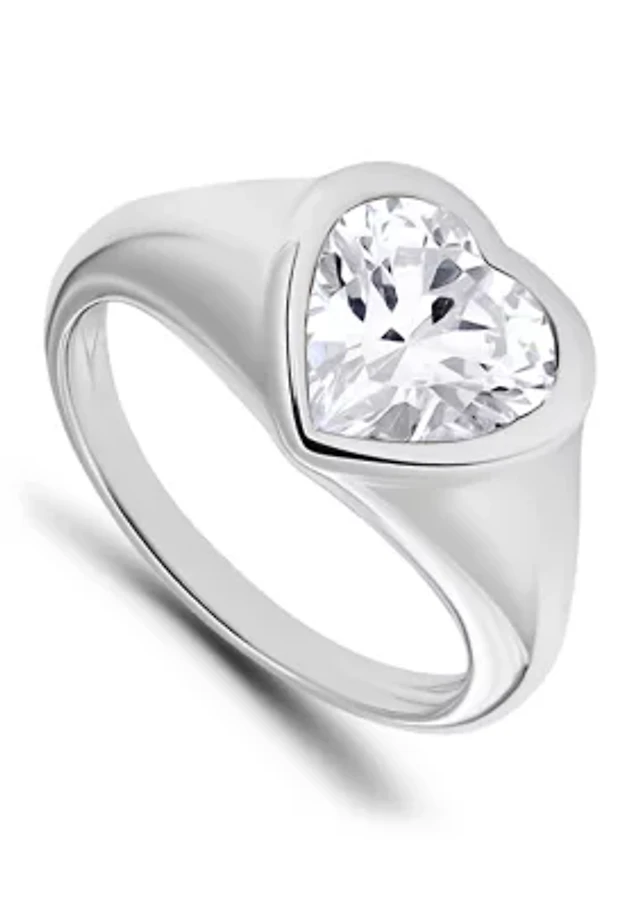 Sterling Silver Heart Shaped Cubic Zirconia Ring