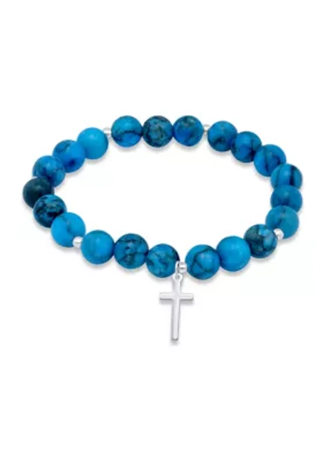 Sterling Silver Cross Charm Bead Bracelet