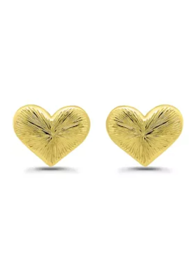 Sterling Silver Etched Heart Stud Earrings