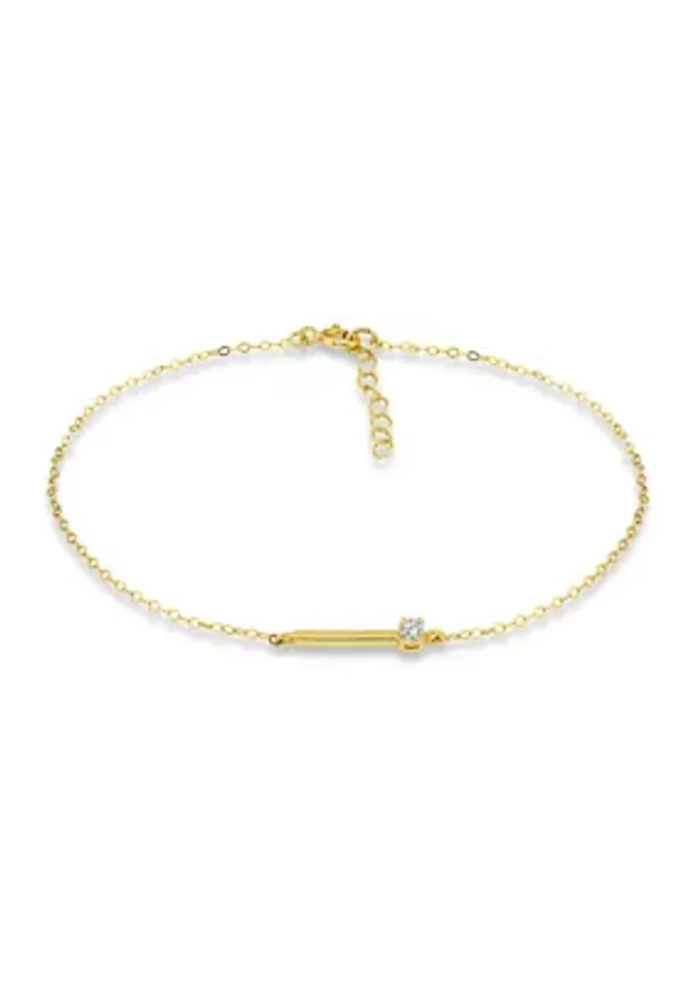 Sterling Silver Round Cubic Zirconia Bar Anklet
