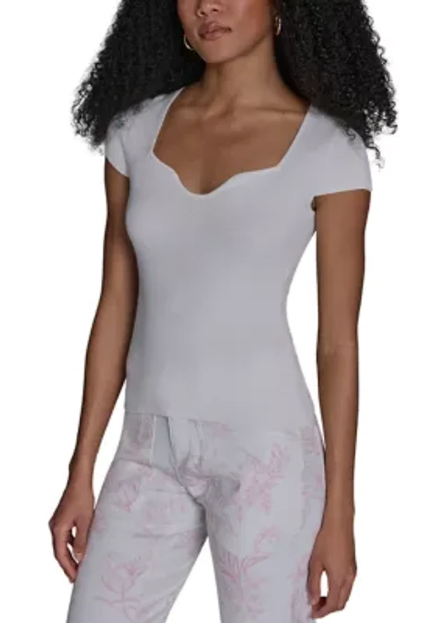 Women's Short Sleeve Ribbed Polo Sweater