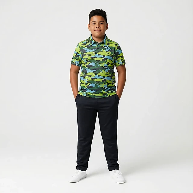 BCG Boys' Golf Shark Camo Short Sleeve Polo Shirt